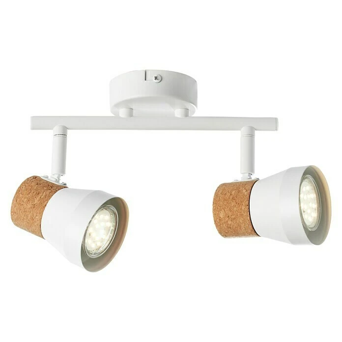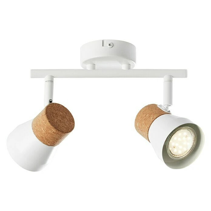 Strahler von Brilliant sorgen immer für die gewünschte Beleuchtung, denn sie können zielgerichtet einzelne Bereiche oder bestimmte Objekte beleuchten. Setzen Sie so zum Beispiel Schränke oder Wandbilder punktuell in Szene oder in Verbindung mit weiteren Spots auch ganze Räume. Setzen Sie mit dem 2-flammigen Deckenstrahler Moka ihr individuelles Beleuchtungsprojekt um. Wahlweise kann die Montage an der Wand oder der Decke erfolgen. Der natürliche Rohstoff Kork schafft ein ruhiges und warmes Ambiente. Durch die Köpfe ist der auszuleuchtende Bereich flexibel veränderbar. Im Lieferumfang sind keine Leuchtmittel enthalten. Ausgelegt ist die Leuchte für den Einsatz von Reflektorlampen. LED-Leuchtmittel können problemlos verwendet werden. Bei Verwendung geeigneter Leuchtmittel ist die Leuchte außerdem noch dimmbar. Sämtliches benötigtes Montagematerial ist im Lieferumfang direkt inbegriffen.