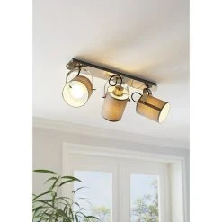 Die Deckenleuchte VILLABATE ist aus nickel-mattem Metall mit drei beweglichen grauen Textil-Spots gefertigt und rundet moderne Einrichtungstrends ab. Die minimalistische Deckenlampe ist dank ihrer schwenkbaren Leuchtenköpfe für jeden Raum geeignet – egal ob in der Küche, im Wohnzimmer, Schlafzimmer, Flur oder Esszimmer. Die Leuchtmittel sind nicht im Lieferumfang enthalten. Geeignet ist die Leuchte für jedes Leuchtmittel mit E27-Sockel.