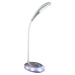 Die Globo LED-Tischleuchte Minea ist eine innovative, schlanke und edle Leuchte aus Kunststoff. Durch ihr modernes Design wirkt sie auf jedem Tisch als Blickfang und passt sich vielen Einrichtungsstilen sehr gut an. Der verbaute Touchdimmer ermöglicht eine Regulierung des Lichtes je nach Bedarf. Somit kann diese Leuchte auch ideal auf einem Schreibtisch beim konzentrierten Arbeiten genutzt werden, da sie bei einer Farbtemperatur bis 5.000 Kelvin eine neutralweiße Lichtfarbe ausstrahlt. Der Flexarm macht eine Ausrichtung der Leuchte in mehrere Richtungen problemlos möglich. Ein besonderes Highlight dieser Tischleuchte ist der Sockel mit verbauter RGB LED Beleuchtung, deren Farben wechsel- und fixierbar sind. Der satinierte Kunststoffschirm sorgt für eine blendfreie Beleuchtung. Beide LED-Leuchtmittel sind äußerst energiesparend und langlebig.