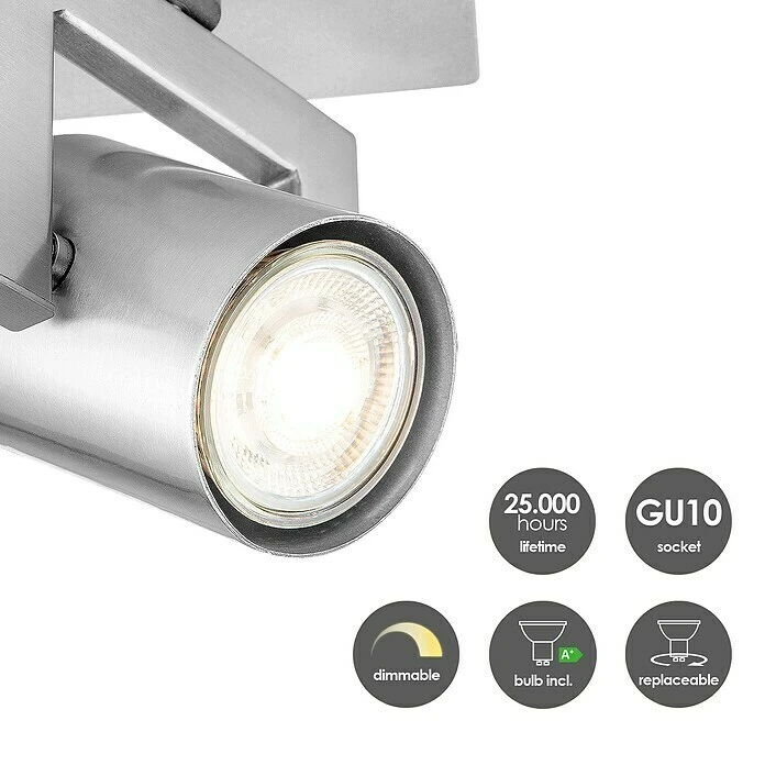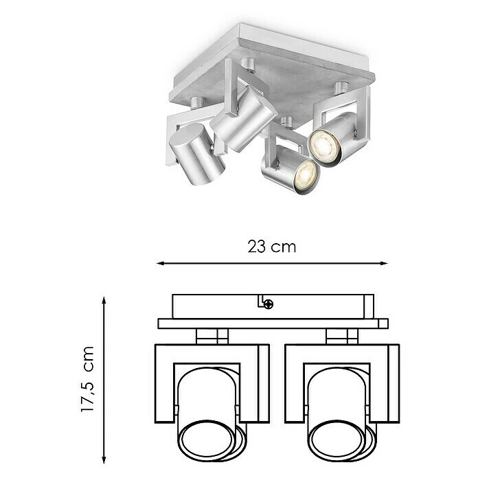 Die LED-Deckenleuchte Concrete von Home Swee Home überzeugt durch ihr modernes Design, welches zum Hingucker in jedem Wohnraum wid. Die Leuchte enthält vier austauschbare LED-Leuchtmittel mit einer GU10 Fassung und 6W. Die warmweiße Lichtfarbe sorgt für Gemütlichkeit und lädt zum Verweilen ein. Die Leuchte kann bis zu 90 Grad geneigt und um 180 Grad gedreht werden. So haben Sie die nötige Flexibilität, um Ihre Beleuchtungspläne umzusetzen. Die LED-Leuchte erzeugt den perfekten Lichtstrahl, um Akzente zu setzen. Mit gebündeltem Licht können Sie jedes Detail Ihrer Inneneinrichtung nach Wunsch betonen und beleuchten.