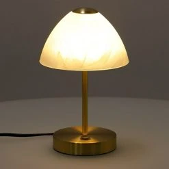 Die Tischleuchte QUEEN überzeugt mit schlichter Eleganz und zeitloser Optik. Der integrierte 4-fach Touch Dimmer ermöglicht eine stufenweise Regulierung der Helligkeit und wird über den Knopf am Fuß gesteuert. Durch das schlichte Design lässt sich die Leuchte problemlos in verschiedene Einrichtungsstile integrieren und eignet sich als Ergänzungslicht neben dem Sofa, als Leuchte auf dem Nachttisch neben dem Bett oder auf der Kommode. Die Tischleuchte hat eine Höhe von 24 cm und einen Durchmesser von 15 cm. Die Leuchte in Messing matt wird mit einem Glas in alabasterfarbig weiß kombiniert, über das ein gleichmäßiges Licht abgegeben wird. Darüber hinaus verfügt die Leuchte über eine moderne LED Technologie, die sich durch eine hohe Lichtqualität und Energieeffizienz auszeichnet. Im Vergleich zu herkömmlichen Halogen Leuchtmitteln lassen sich bis zu 80% der Energiekosten sparen. Zusätzlich haben LED Lichtquellen eine lange Lebensdauer, produzieren weniger Wärme und schonen die Umwelt.