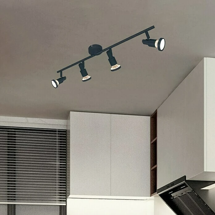 Die Oberfläche dieses Deckenstrahlers ist mit schwarzer Sprühfarbe beschichtet, die eine Anti-Rost-Funktion hat. Die Spots der Deckenleuchte können gedreht werden, wodurch Sie den Winkel nach Ihren individuellen Bedürfnissen einstellen können. Die LED-Deckenleuchte ist mit zwei austauschbaren GU10-Birnen ausgestattet. Die Leuchte ist durch Befestigen der Halterung an der Decke oder Wand und anschließenden Befestigung der Lampe an der Halterung einfach zu montieren. Im Lieferumfang sind sechs Glühbirnen mit je 300 Lumen und 4 Watt enthalten. Die warmweiße Farbtemperatur schafft eine angenehme Atmosphäre. Das moderne, aber schlichte Design macht diese Deckenleuchte geeignet für viele Bereiche, wie Esszimmer, Wohnzimmer, Flur, Küche, Schlafzimmer und Kinderzimmer.