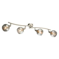 Die 4-flammige LED-Spotleiste Ball von Tween Light ist durch ihre Rauchglasoptik ein schöner Blickfang für verschiedene Wohnbereiche. Die schwenkbaren Spots sind an nickel-matten sowie beweglichen Leuchtenarmen befestigt und können je nach Lichtbedarf in verschiedene Richtungen gestellt werden. Hierdurch kann die Spotleiste ideal zur gezielten Ausleuchtung von Bereichen oder Elementen genutzt werden. Durch das Rauchglas entstehen besondere Lichteffekte, die eine gemütlich Atmosphäre schaffen. Die enthaltenen, energiesparenden LED-Leuchtmittel strahlen eine angenehm warmweiße Lichtfarbe aus und können bei Bedarf gegen passende Leuchtmittel der Energieeffizienzklassen von A++ bis E mit E14 Fassung ausgetauscht werden. Hierdurch kann auch die Lichtfarbe nach Wunsch verändert werden. Zur Kombination eignen sich andere Leuchten aus der gleichen Serie für eine einheitliche Optik.